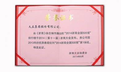 由《浙商》杂志推出的“2014浙商天下500强”排行榜于2014(第十一届)浙商大会宣布。。。。。。。。